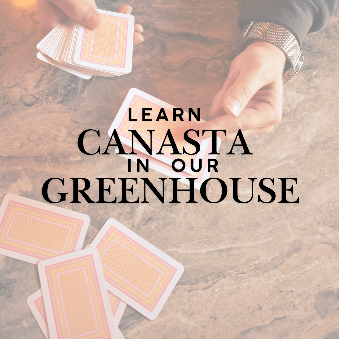 Join the one and only Micky Garrity on Thursday February 26th from 9:30-11:30 in our warm greenhouse, where she will teach us the rules to Classic Canasta. No charge, but space is limited. Register below!