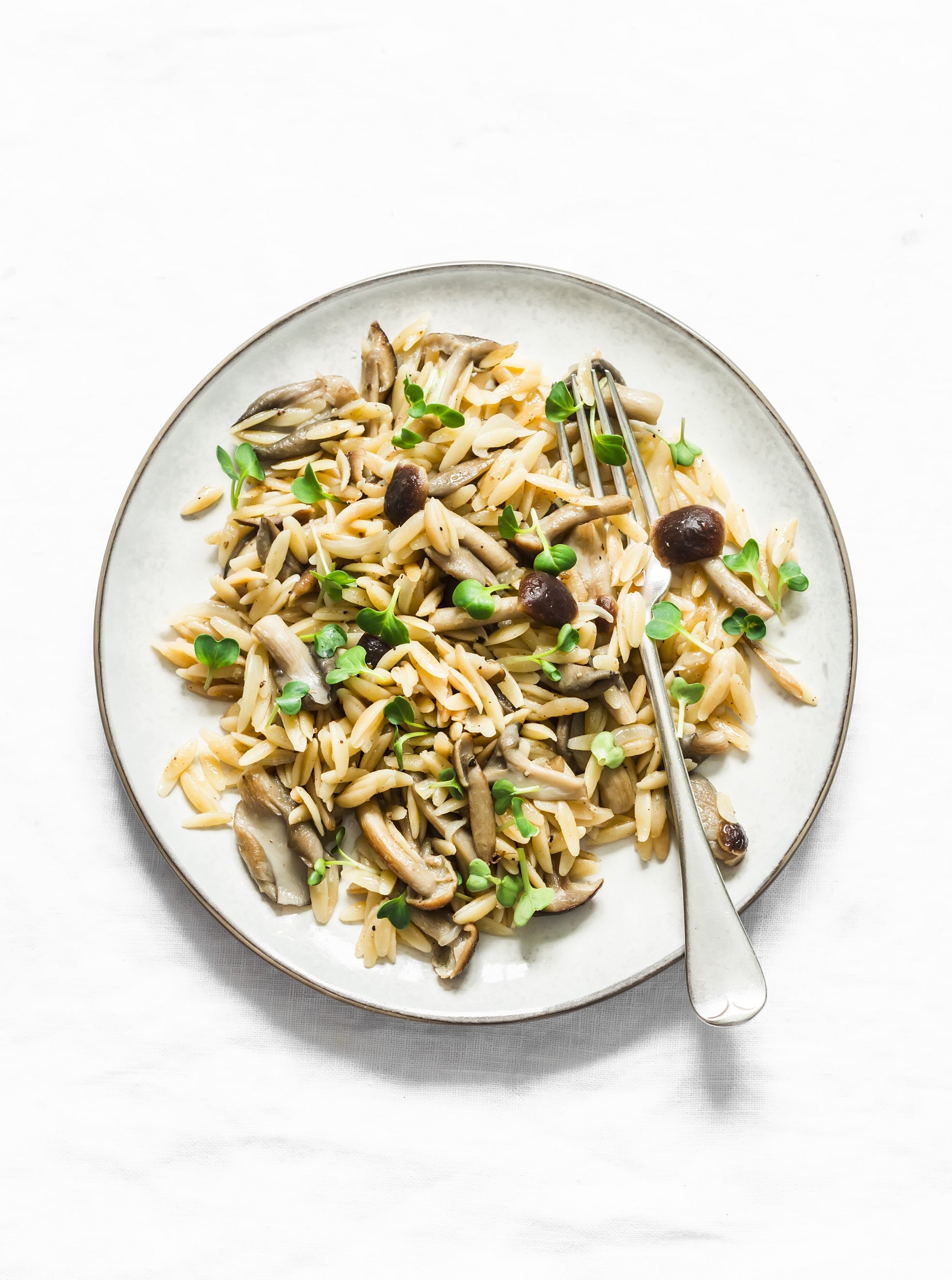 Toasted Orzo and Rice with Brussels Sprouts and Mushrooms